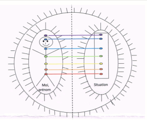 Etape 4 : dessiner les lignes d’attachements conscientes ou inconscientes pour les 7 centres d’énergies (chakras).